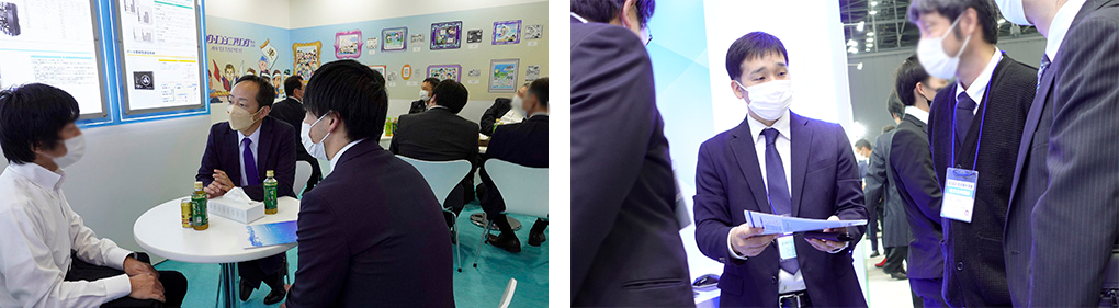 2022名古屋水道展ご来場ありがとうございました 2022.10.31 水道展の様子を紹介 実際の展示ブース写真。青と白基調で整えたデザインとなっています。 弊社の新人、ベテラン社員も大活躍! 談話ブースでは様々な商談話が進んでいました。 水道産業新聞社様に毎月掲載される広告をカラー化して絵画展にする事で大好評でした。 多くのご来場ありがとうございました。来年、東京ビックサイトでお待ちしております。