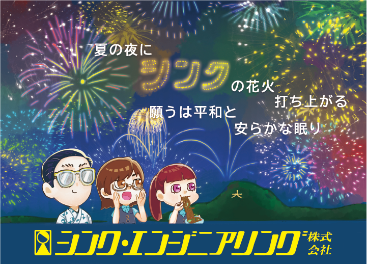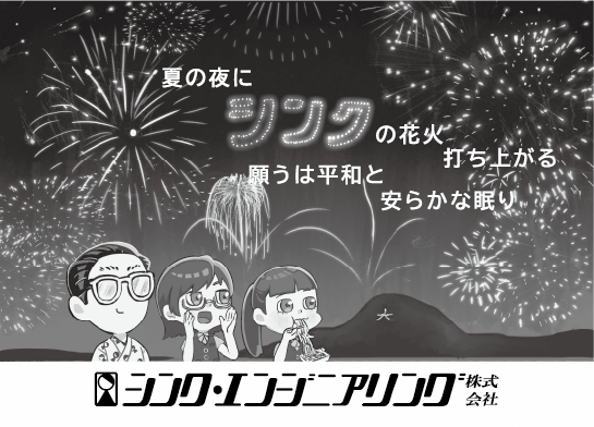 8月 掲載広告のお知らせ 2025.10.05 「 花火 」 <コメント> 花火を3人で見ているというイメージで制作しました。 彩色の段階では、赤黄青を意識して色を塗り分けし、 まとまりがあるように仕上げました。 サイズ:機関誌(110㎜×155㎜)、5段2分の1(164.5㎜×185㎜) 掲載場所:機関誌・水道産業新聞社 「 水撒き 」 <コメント> 日照りがかなり続いた時期に作成しました。 モノクロの虹が色分けで苦戦しましたが、なんとなりました。 サイズ:3段3分の1(96.6㎜×121㎜) 掲載場所:日本水道新聞社・水道産業新聞社 「 風鈴 」 <コメント> 8月に掲載されるということで、夏の風物詩と 漢数字の「八」=「末広がり」を表して、8つの風鈴にいたしました。 サイズ:記事中(69.5㎜×30.6㎜) 掲載場所:水道産業新聞社